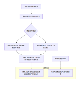 - 针对性强:攻击者可以精确地攻击消耗资源大的动态页面(如数据库搜索、视频加载)或关键接口(如登录、支付),达到“四两拨千斤”的效果。